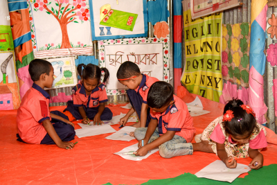 Vor Projektbeginn waren die Vorschulen von erheblichen Mängeln geprägt: unregelmäßige Anwesenheit von Kindern und Lehrkräften, kaum kindgerechte Lernmethoden und fehlende Materialien. Nach staatlichen Vorgaben ist in Bangladesch bisher ein Jahr Vorschule für Kinder ab 5 Jahren verpflichtend. Um die Vorschulzeit auf zwei Jahre auszuweiten – beginnend bereits mit vier Jahren – startete das Bildungsministerium 2021 eine Pilotphase. Das Projekt unterstützte diese an 80 staatlichen Grundschulen und schuf die Grundlage für eine dauerhafte Umsetzung. Dafür wurden neue Lernräume eingerichtet und mit Spielecken, altersgerechten Büchern und Lernmaterialien ausgestattet. So entstand ein Umfeld, das Kinder spielerisch und kindgerecht auf die Schule vorbereitet.