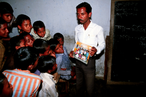diese Woche war es soweit: NETZ ist 35 Jahre geworden! Von einer Runde junger Menschen und ihrer Zeitschrift zu einer Gemeinschaft direkter Solidarität und ihrem NETZ in Südasien und Europa waren es viele Schritte, die nicht immer einer nach dem anderen, sondern auch links und rechts, vorwärts und rückwärts gingen. Immer mit dabei war, was auch auf dem obigen Bild aus dem NETZ-Gründungsjahr im Zentrum steht: die Begegnung zwischen Menschen aus Deutschland und Bangladesch. Die mit einem Foto beginnen mag, dann aber oft zu viel mehr wird, wie hier zu einer Partnerschaft zwischen Schulen und Kindern.