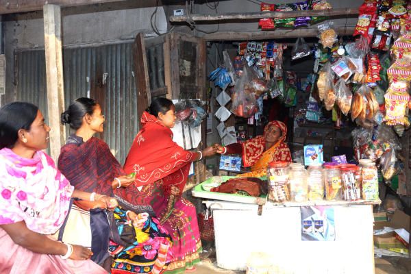 Umso wichtiger ist es, was Protima Bala (auf dem Foto) auf die Beine gestellt hat. Sie betreibt einen Gemischtwarenladen, der mittlerweile die ganze Familie trägt. Nach einem Leben beinahe ohne Schulbildung und Einkommen schafft sie und die anderen Frauen in ihrer Dorfgruppe einen Lebensunterhalt, den sie alle verdienen.