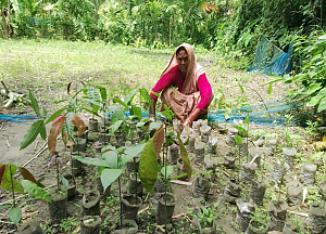 Zwei Dorfgruppen in Nordbangladesch nutzen die Einnahmen aus ihrem Reisverkauf, um gemeinsam Chili, Jackfruit und Mango zu pflanzen.