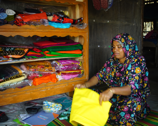 erhalten Frauen neben Saatgut und Trainings auch die Grundlage für ein zweites Standbein - so wie Nazma mit ihrem Nähgeschäft.