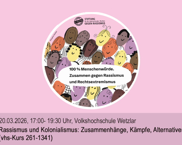 Im Rahmen der Internationalen Wochen gegen Rassismus bietet NETZ diesen Workshop am 20. März in der Volkshochschule Wetzlar an.