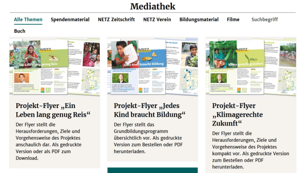 Wir haben unsere Mediathek überarbeitet. Ihr findet hier viele Materialien rund um Bangladesch und unsere Arbeit, z.B. die NETZ-Zeitschriften und weitere aktuelle Publikationen, Unterrichts- und Aktionsmaterialien, Poster, Broschüren sowie Filmmaterial. Ein Großteil kann direkt heruntergeladen werden, andere Materialien könnt Ihr bequem bestellen – alles an einem Ort gesammelt und leicht zugänglich.